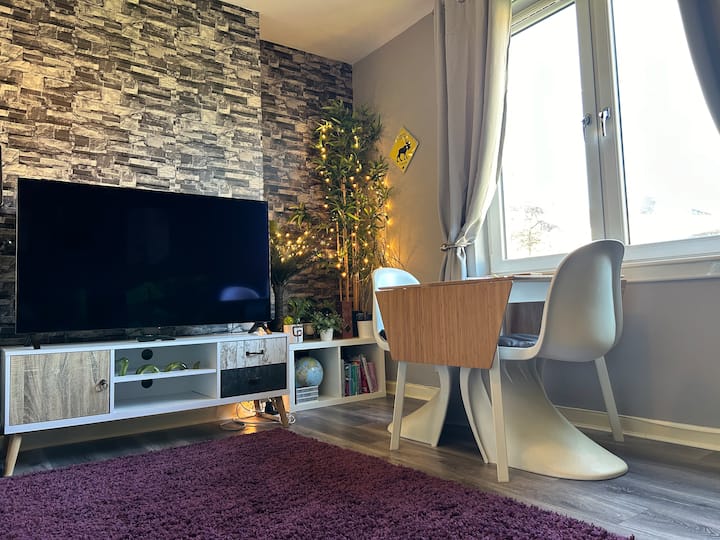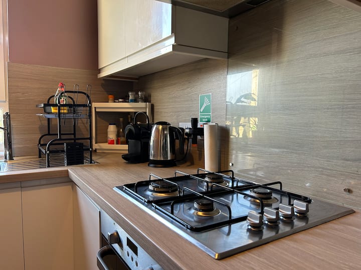 شقة حديثة بغرفتي نوم مع موقف سيارات بالقرب من وسط المدينة