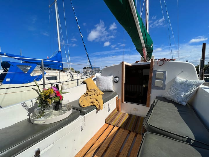 ملاذ قارب شراعي عتيق على بعد دقائق من بلد النبيذ