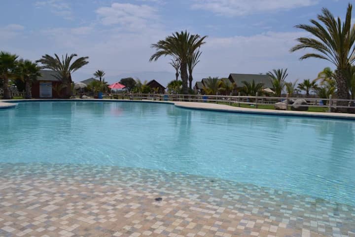 أكواخ لطيفة مع حمامات سباحة ومساحات خضراء