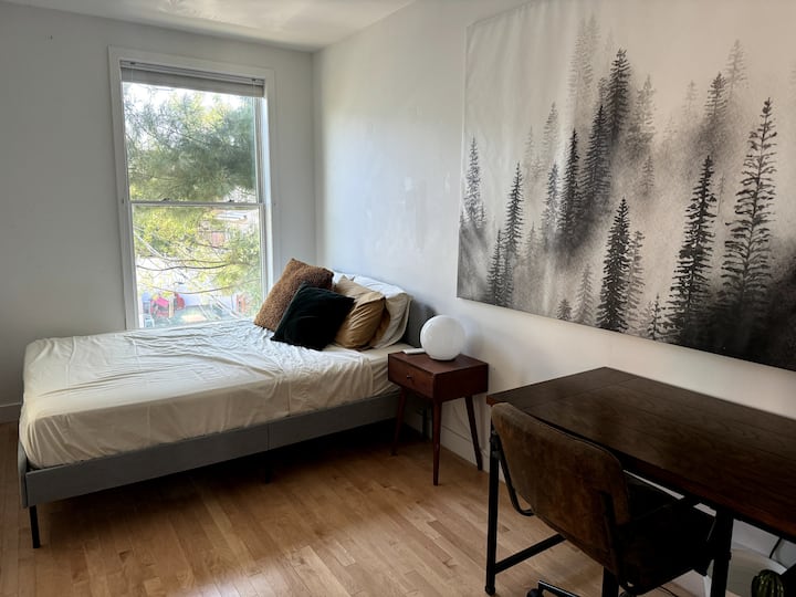 غرفة جميلة في شقة ساحرة مليئة بالشمس بسريرين وحمام واحد