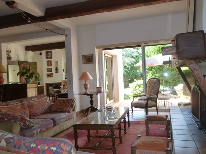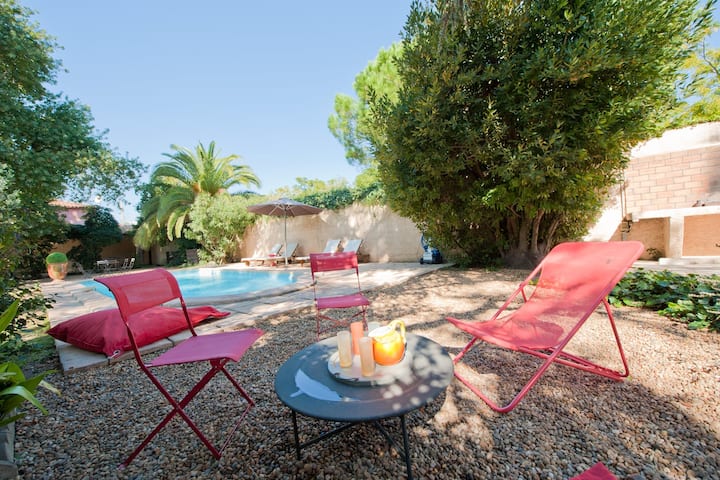 حمام سباحة خاص دافئ بمساحة كبيرة - على بعد 10 دقائق من البحر -