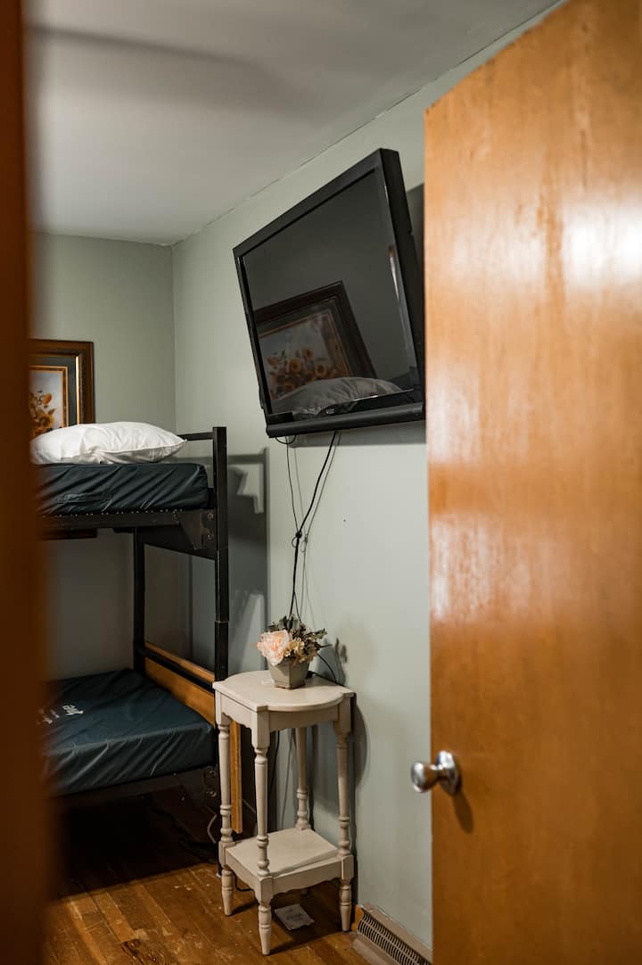 اسمع، نحن مجرد أشخاص في بلدة صغيرة مع ضيافة بلدة صغيرة! ندير متجرًا صغيرًا في Burlington Jct. مع متجر آيس كريم مضاف حديثًا. (يجب عليك التوقف وتجربة الهزة أو الشعير!! أو واحدة من لفائف القرفة الشهيرة لزوجتي!) قد لا نكون أكثر Airbnb روعة التي أقمت فيها، لكنني أضمن أنها هادئة في المكان كما ستجدها على الإطلاق! نريدك أن تحصل على أفضل تجربة ممكنة!