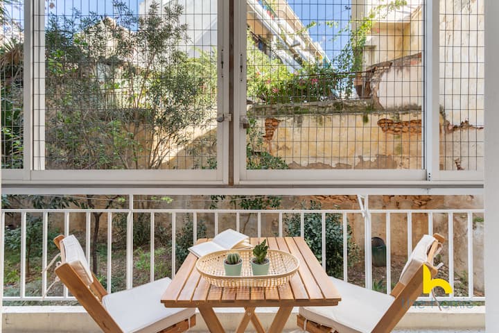 قاعدة هادئة وبسيطة مع شرفة بالقرب من المترو