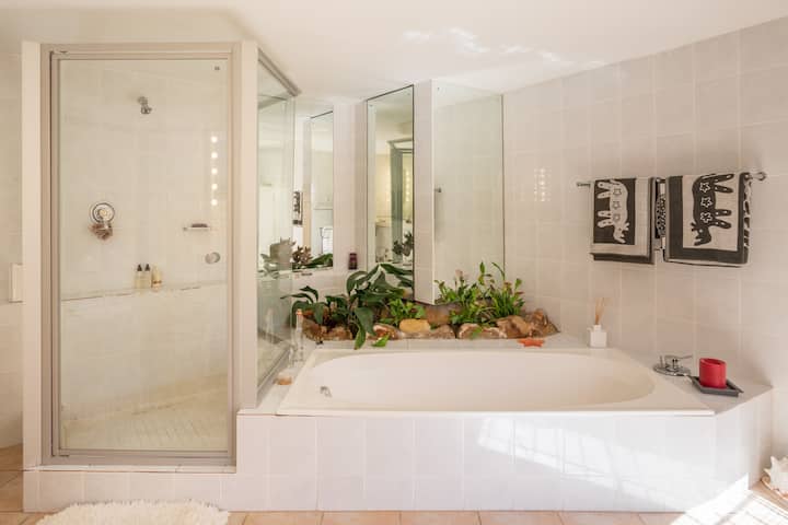 غرفة ضيوف خاصة وهادئة جميلة مع حمام داخلي كبير في باكوفن، خليج المخيمات، والتي تؤدي إلى الحديقة وحمام سباحة ولها مدخل منفصل. على مسافة قريبة سيرًا على الأقدام من الشواطئ الجميلة والمقاهي والمطاعم الجانبية. الأكثر ملاءمة للأزواج أو الأفراد.