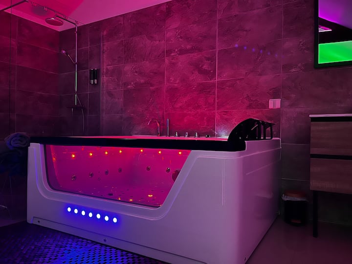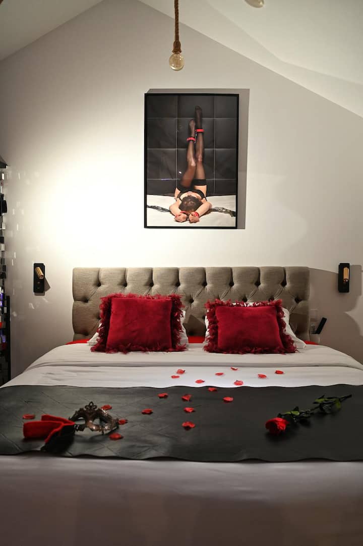 غرفة الحب لليلة مثيرة وحارة. بيت مجهز تجهيزًا جيدًا لقضاء ليالٍ فريدة، تجرأ على عبور باب الاختلاف