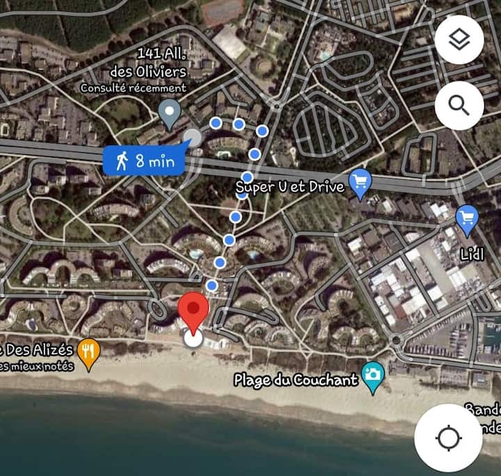استوديو جميل مع موقف سيارات بالقرب من الشاطئ