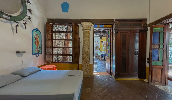 غرفة رئيسية مع مكيف هواء في بيت استعماري