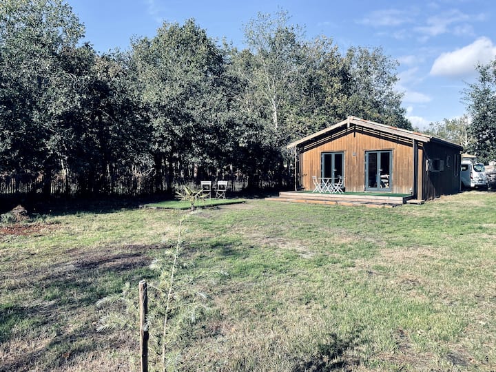 منزل خشبي على حافة الغابة