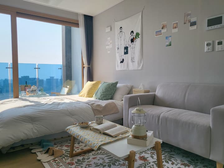 هذه هي الإقامة التاسعة، على بعد 15 دقيقة سيرًا على الأقدام من مطار جيجو.