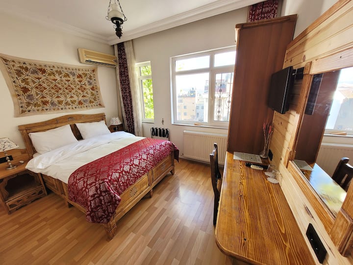 انتقلت عائلتي من إسبارتا التي تقع جنوب تركيا إلى إسطنبول قبل حوالي 23 عامًا وافتتح والداي بيت الضيافة هذا. كان والدي مجرد سائق قلق لكنه افتتح بيت ضيوف دون أي إنجليزي أو تجربة سفر. لقد كان شجاعًا جدًا! كنت طفلاً لكنني أحببت أن أكبر مع السياح في منزلنا.