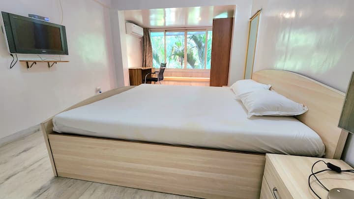 غرفة كبيرة ومريحة في منطقة خضراء مورقة بالقرب من أوشو أشرام