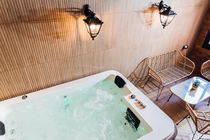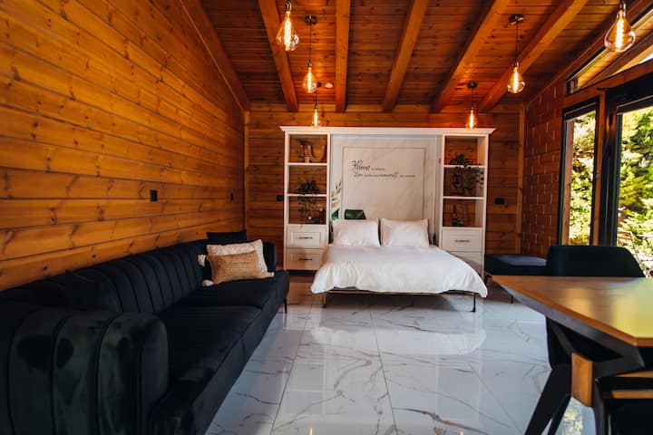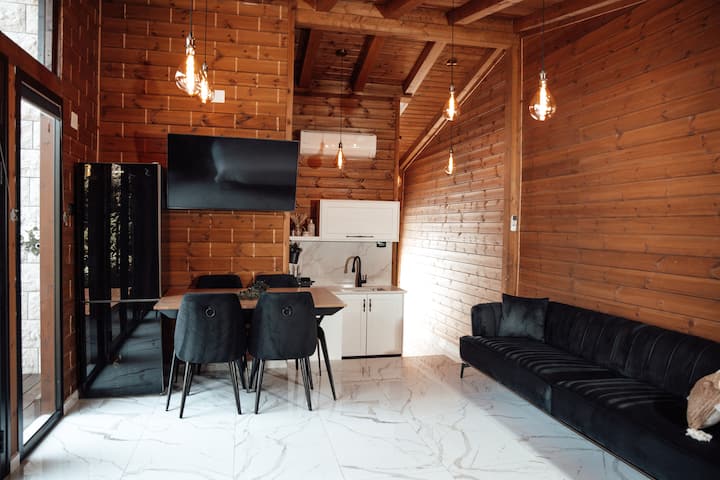 أكواخ جميلة، غرفة نوم واحدة. حوض استحمام ساخن خاص.