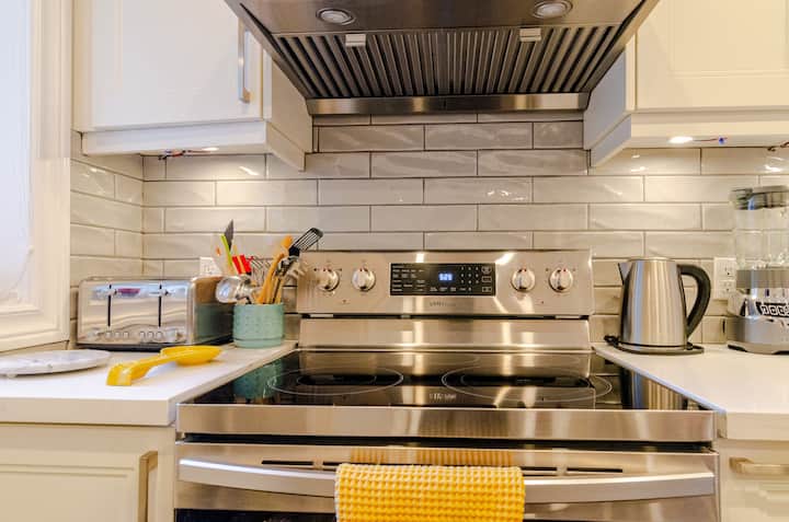 شقة تنفيذية بغرفتي نوم في الطابق الرئيسي وموقف سيارات مجاني وفناء خلفي