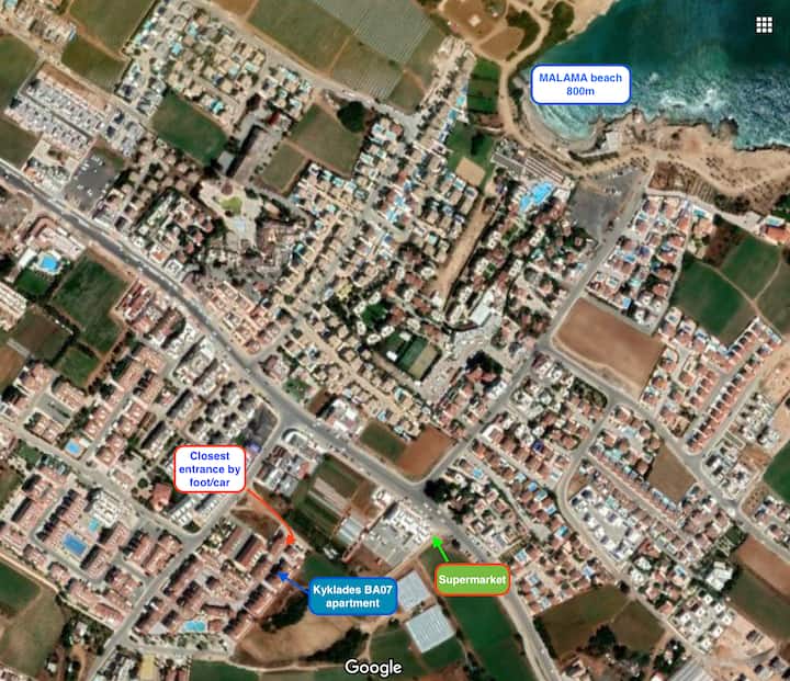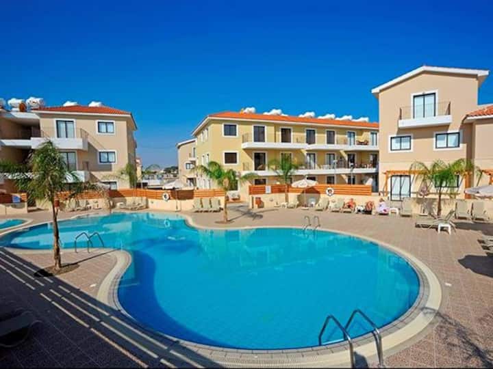 غرفتا نوم أنيقتان مع حمام سباحة مشترك، الشاطئ على بعد 10 دقائق سيرًا على الأقدام