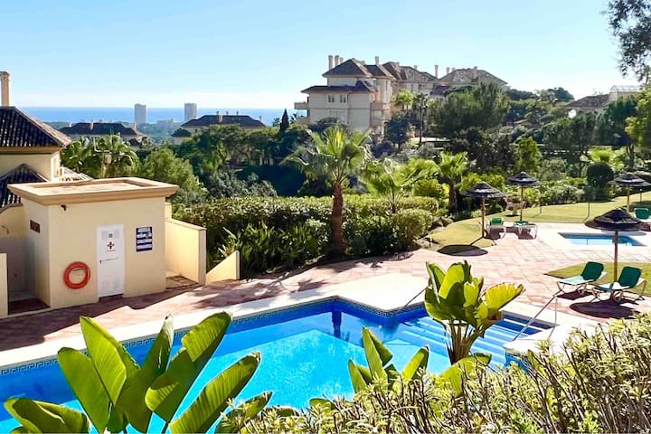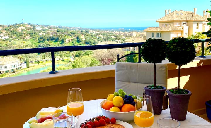 شقة ساحرة مع إطلالات وغولف وحمامات سباحة وتنس
