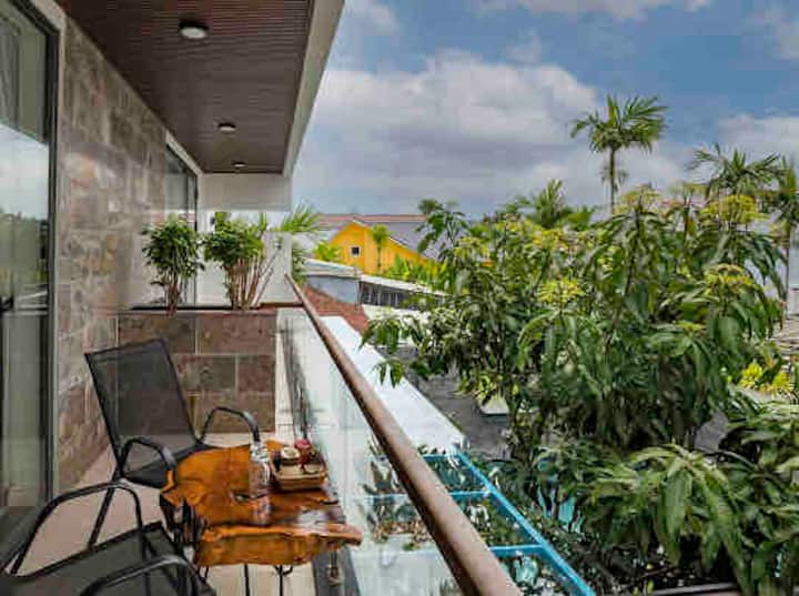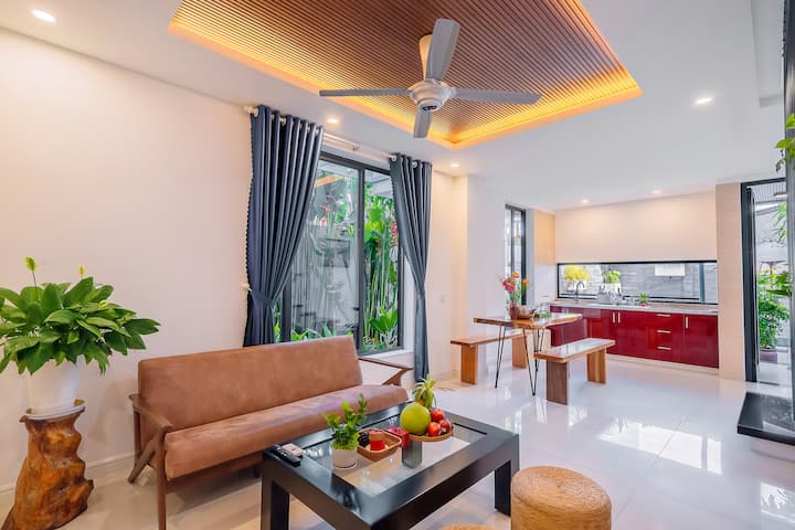 تم بناء فيلتنا بحب بأرضيات حجرية وأسقف عالية الأعمدة وتفاصيل عتيقة لإضفاء شعور فاخر وساحر. استمتع باللحظات المريحة في حمام السباحة والحديقة المورقة. يقع المنزل في وسط هوي آن، وتحيط به المناظر المحلية مثل النهر وحقل الأرز. على الرغم من أن المتاجر والمطاعم تبعد خمس دقائق فقط بالسيارة، إلا أن المنطقة تبدو هادئة ومنعزلة.
