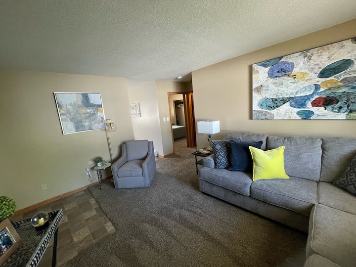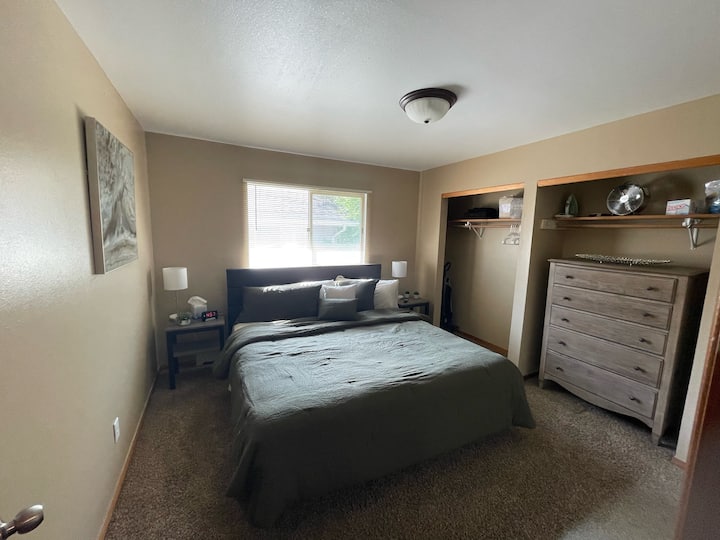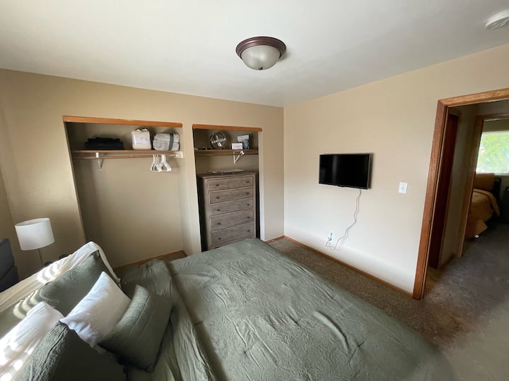 شقة مريحة من غرفتي نوم مع سرير كينج وسرير كوين