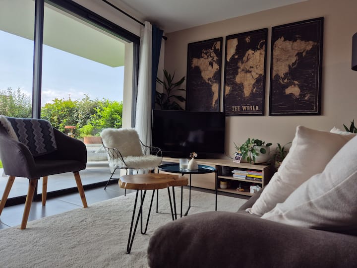 شقة مع مرآب وإطلالة على الجبال