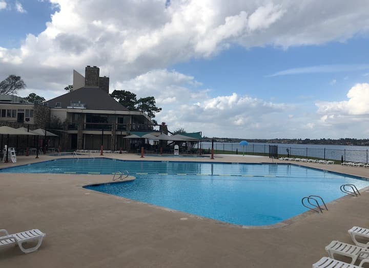 يقع هذا البيت على Lake Conroe مباشرةً.
