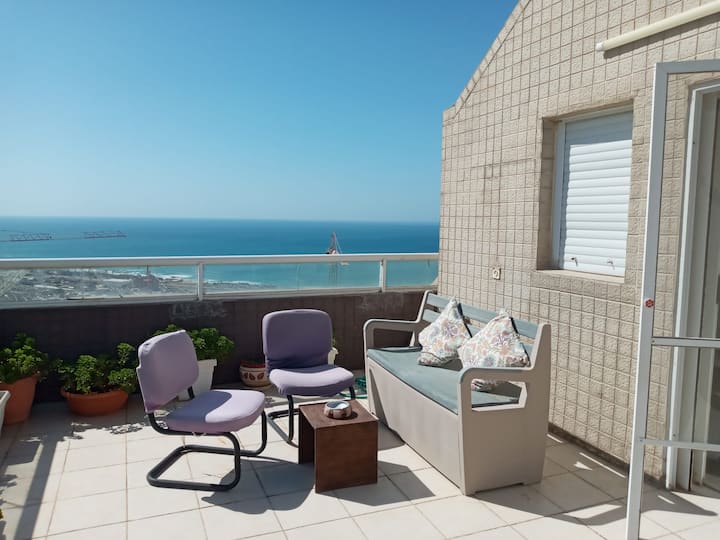 شقة شرفة بإطلالة على البحر والجبل في حيفا