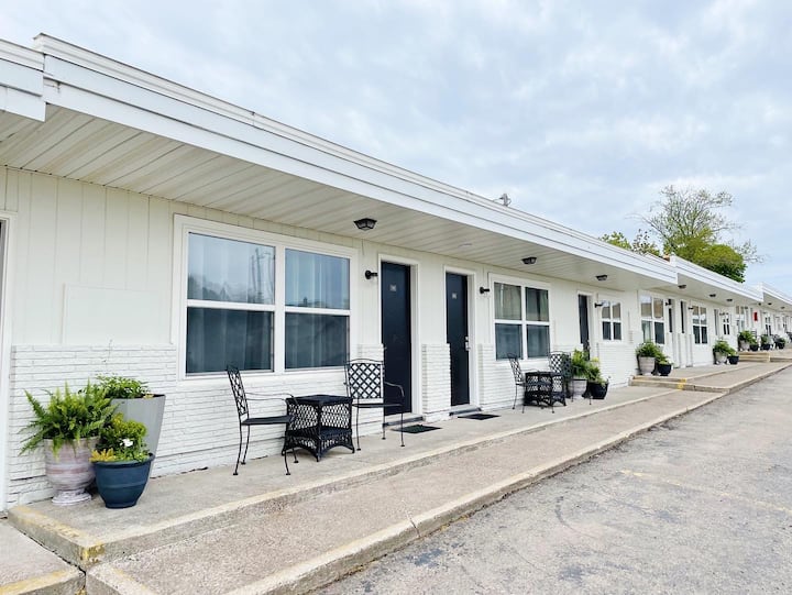 على الرغم من أننا أردنا أن يعكس المبنى جذوره في الخمسينات ، إلا أنه من المهم أيضًا أن يكون لدينا جميع وسائل الراحة الحديثة. للبدء، تتم إدارة أقفال الأبواب بواسطة لوحات المفاتيح بدلاً من المفاتيح أو البطاقات المادية. يتم إرسال رمز مخصص عبر البريد الإلكتروني مباشرة إلى ضيوفنا وهو أمر جيد فقط أثناء إقامتهم. يمكن للضيوف الاسترخاء والسير مباشرة إلى جناحهم والحصول على سهولة الإقامة المستقلة!