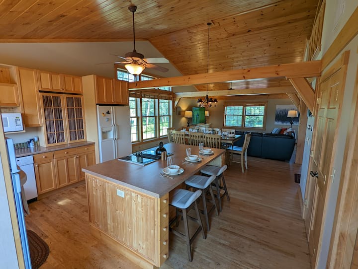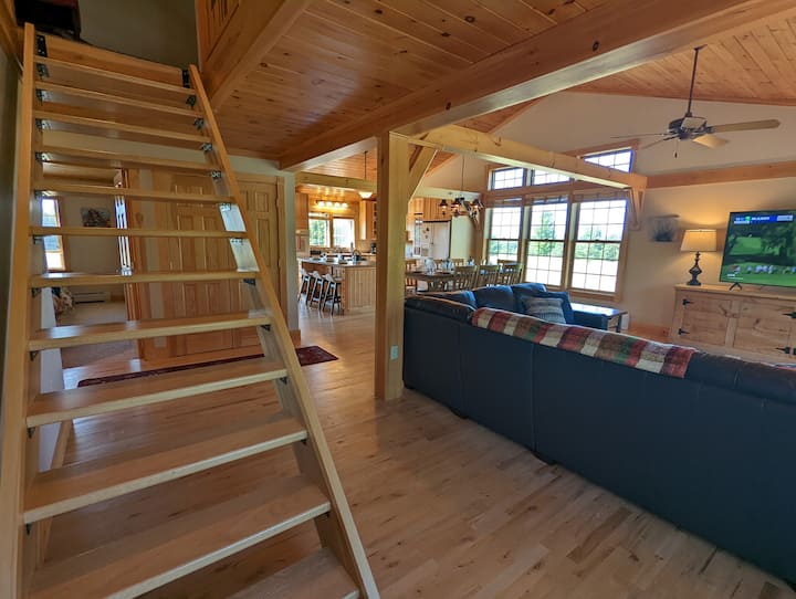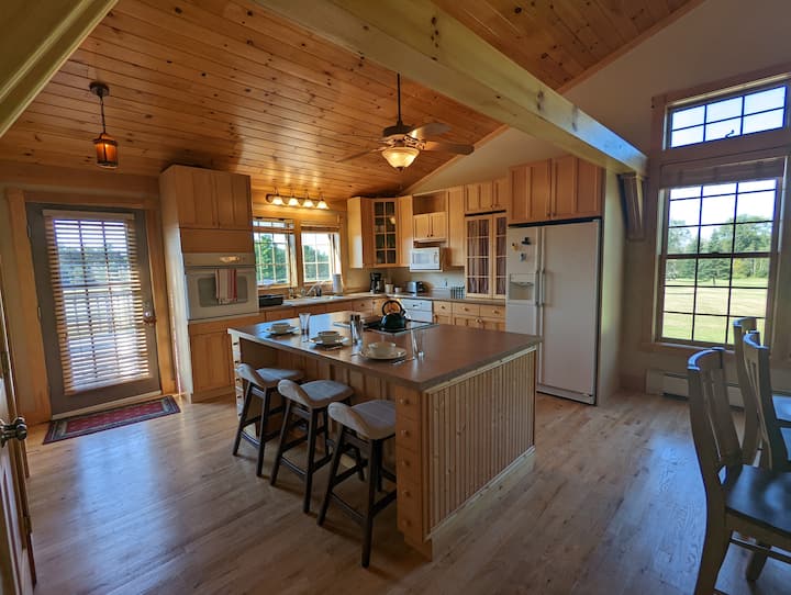 كوخ هادئ وواسع مع إطلالات على ملعب الغولف وغروب الشمس