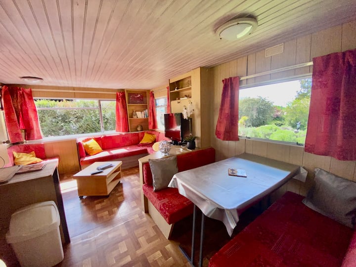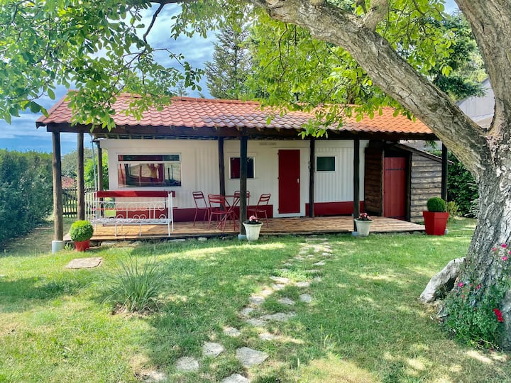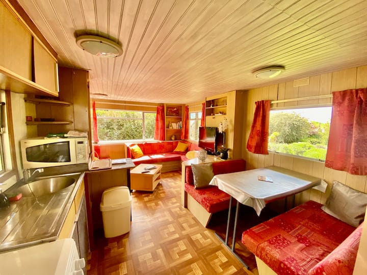 بيت متنقل تحت شاليه خشبي في المزرعة