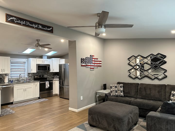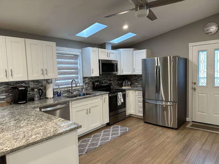 بيت جميل يحتوي على 3 غرف نوم بالقرب من المدينة والشاطئ مع سرير كينج