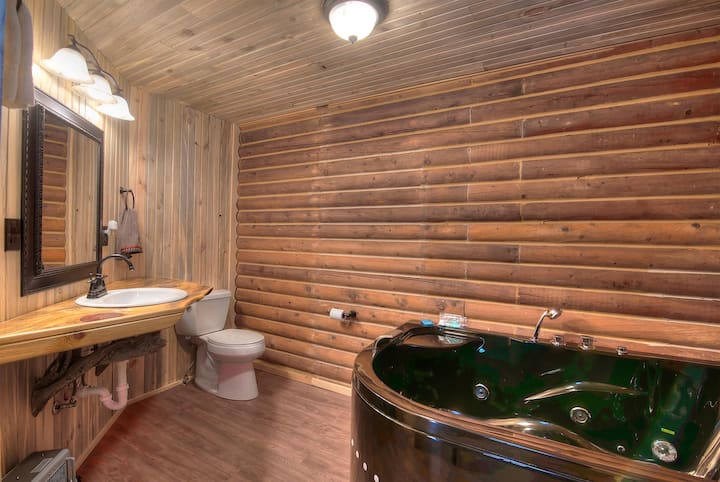 كوخ خشبي على طراز الطيور الطنانة مع جاكوزي خاص