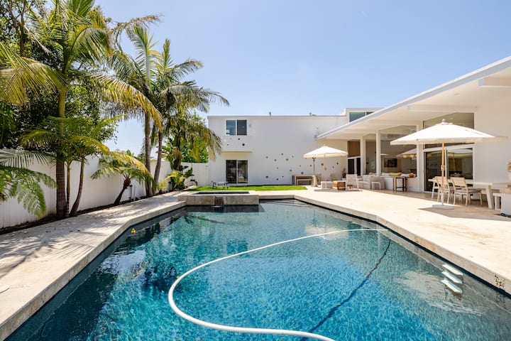 بيت عائلي مذهل من منتصف القرن مع حمام سباحة ومنتجع صحي