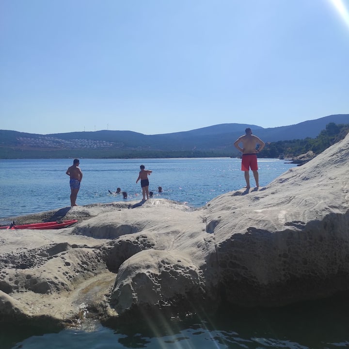 فيلا هادئة ومريحة مع جاكوزي وإطلالة على البحر