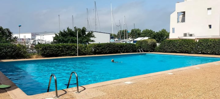 إطلالة على الميناء وغروب الشمس. التراس وحمام السباحة