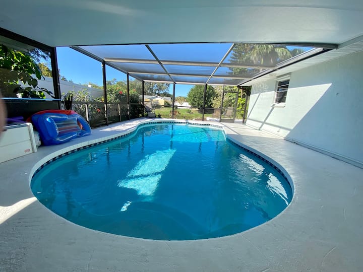 على بعد مسافة قصيرة بالسيارة من الشواطئ ~ 3 غرف نوم مع حمام سباحة ~ أمام البركة!