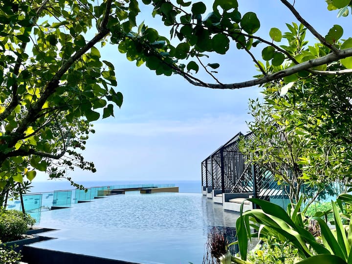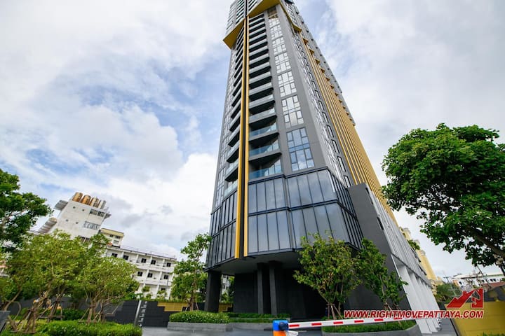 شقة بغرفة نوم واحدة في باتايا ذا إيدج مع حمام سباحة لا حدود له على السطح وصالة ألعاب رياضية وفندق هيلتون صغير يمكن شحن السيارة فيه