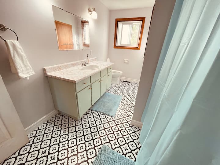 غرفة مبهجة مع غرفة مساحيق خاصة بالقرب من وسائل الراحة