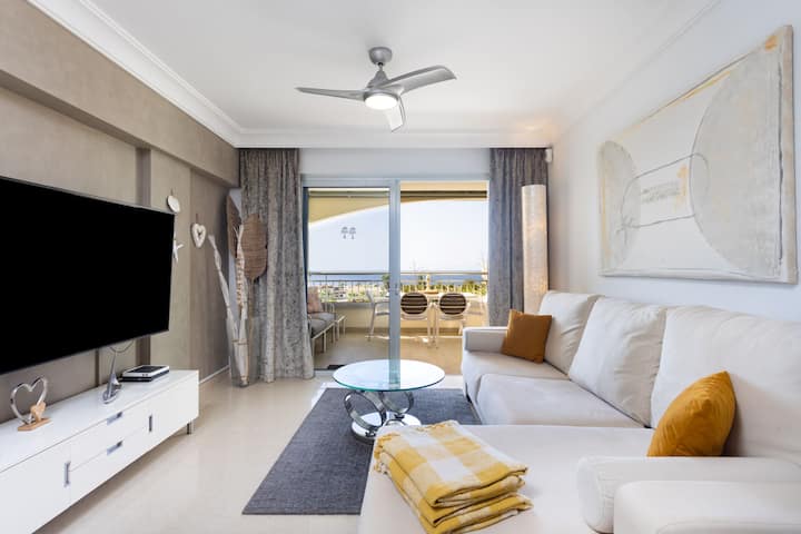 شقة جديدة مع إطلالة رائعة على البحر وحمام سباحة