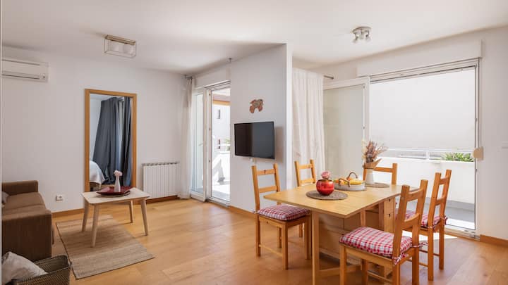 شقة عصرية مع تراس، على بعد 4 دقائق سيرًا على الأقدام عن الشاطئ