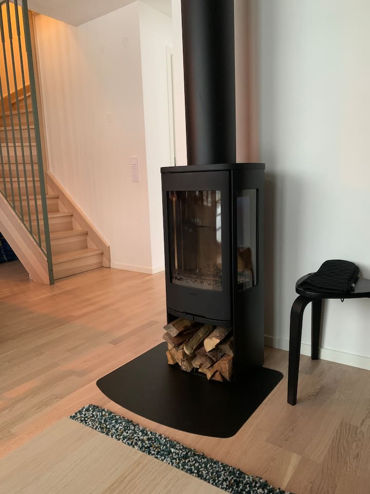 منزل شبه منفصل حديث الصنع مع مدفأة حطب وساونا