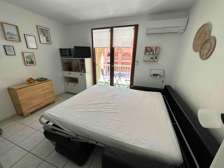 استوديو يتسع لثلاثة أشخاص، في موقع مثالي، على مسافة قريبة من الشاطئ
