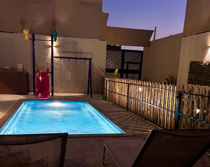 حمام سباحة خارجي خاص - متاح طوال العام ومفتوح على مدار 24 ساعة وزحليقة مائية ومسبح طويل
