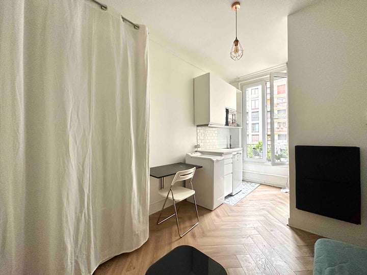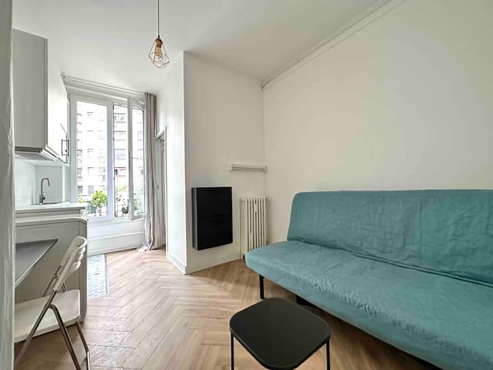 استوديو هادئ ومشرق، بالقرب من المترو والمتاجر