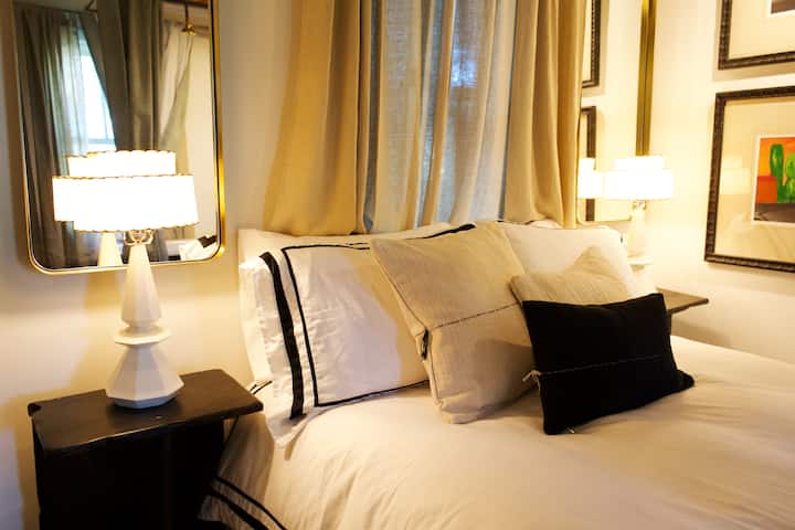 غرفة ساحرة بمدخل خاص مع حوض استحمام.