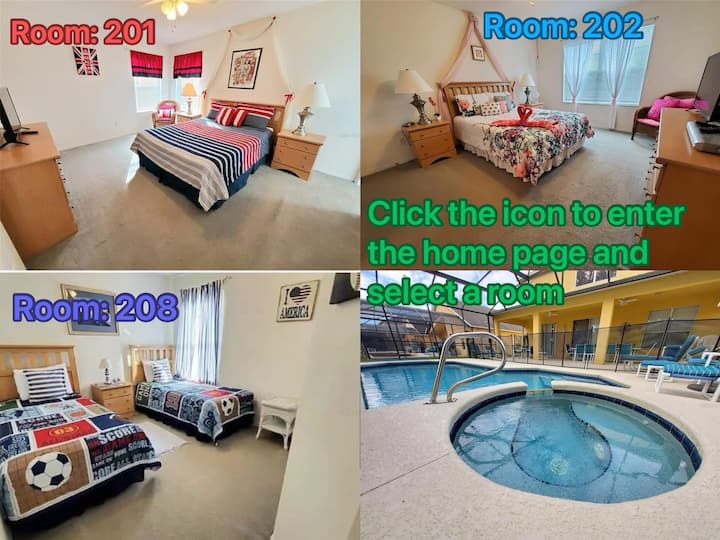 غرفة 208 واسعة قريبة من ديزني مع حمام سباحة