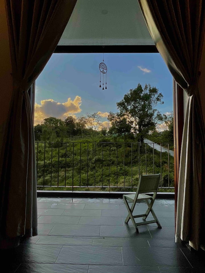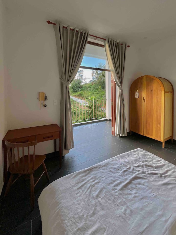 غرفة R205 بسرير بحجم كوين وشرفة بإطلالة جبلية
