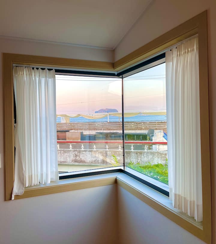 إطلالة على شروق الشمس في سيونغسان تقع مباشرة أمام شاطئ جونجدال، مبنى سلو مانشن سي