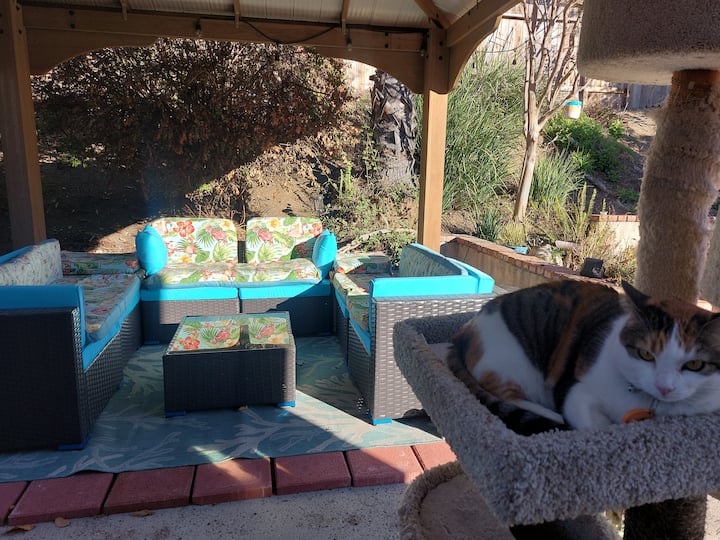 بالنسبة لي ، أحد أفضل الأشياء في السفر هو العودة إلى بيتي الجميل. أنا ممتن للغاية لقدرتي على العيش في مثل هذا الموقع الرائع ، في مجتمع آمن ومتنوع ، بالقرب من الطبيعة وفنون وثقافة منطقة حضرية رئيسية مثل لوس أنجلوس ؛ ومع ذلك أسمع الطيور في الخارج ، بدلاً من حركة المرور.
