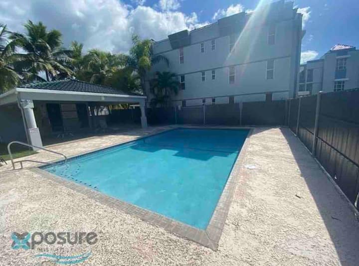شقة مريحة من غرفتي نوم مع شرفة على السطح وحمام سباحة