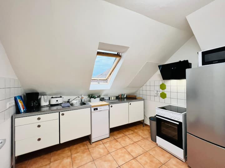 نتمنى لك يومًا سعيدًا. أنا دينيس. مع زوجي ستيفان قمنا بتجديد شققنا وتجديدها وتأثيثها. يبلغ عمر بيتنا حوالي 200 عام ونحاول الجمع بين الحديث والتاريخ. كونوا ضيوفنا وكونوا مرتاحين. نتطلع إلى رؤيتك قريبًا.