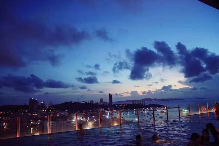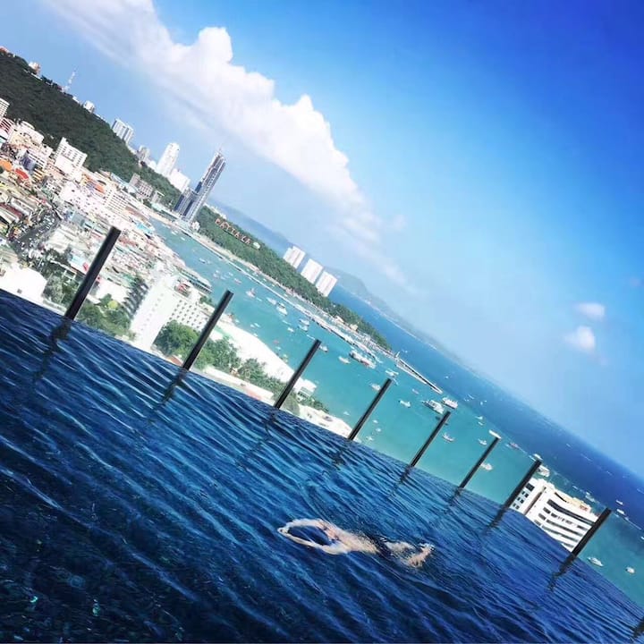 شقة شاطئية مشهورة على الإنترنت في باتايا، تحتوي على غرفتي نوم، تتسع لـ 5-6 أشخاص