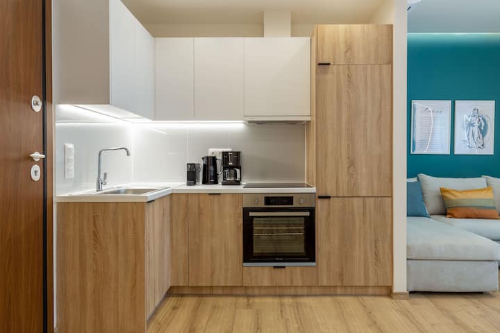 شقة حديثة بغرفتي نوم مع شرفة وصالة ألعاب رياضية